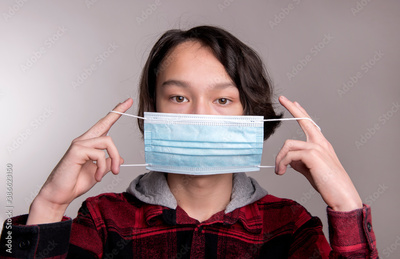 Young boy wearing mask to stay safe and prevent spreading of corona virus