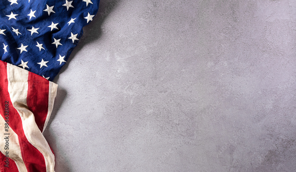 Happy Veterans Day concept. American flags against gray stone background. November 11.