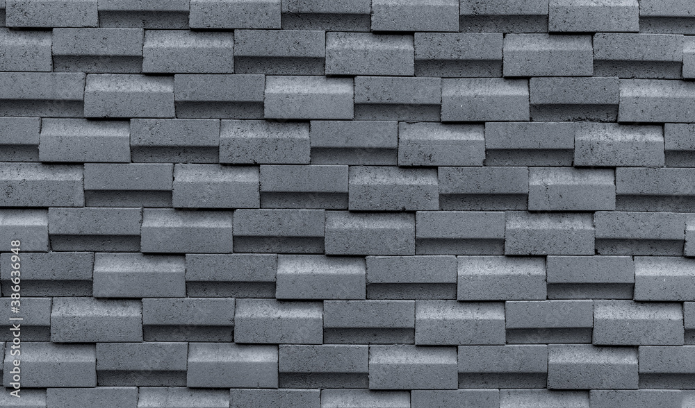 Gray brick wall with simple pattern. Gray wall texture abstract background. Modern design of brick wall background. Simple abstract wallpaper. Concrete surface texture. Exterior architecture design.
