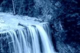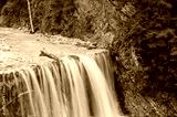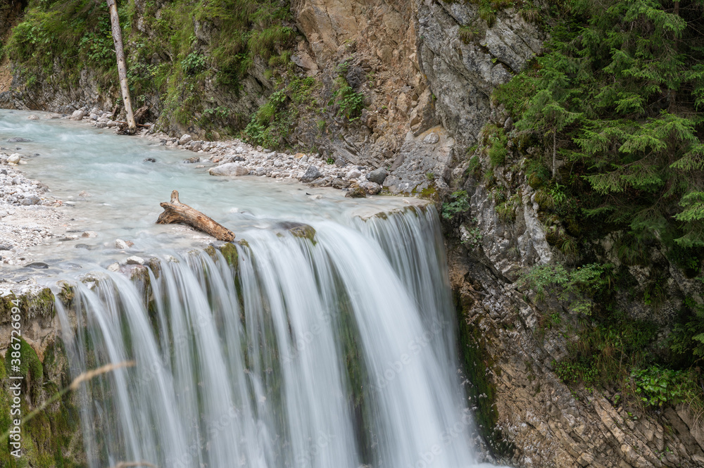 Beautiful wide waterfall falling in rocky nature
