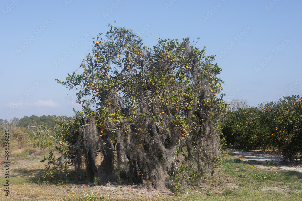 Old orange trees in a small Florida Grove