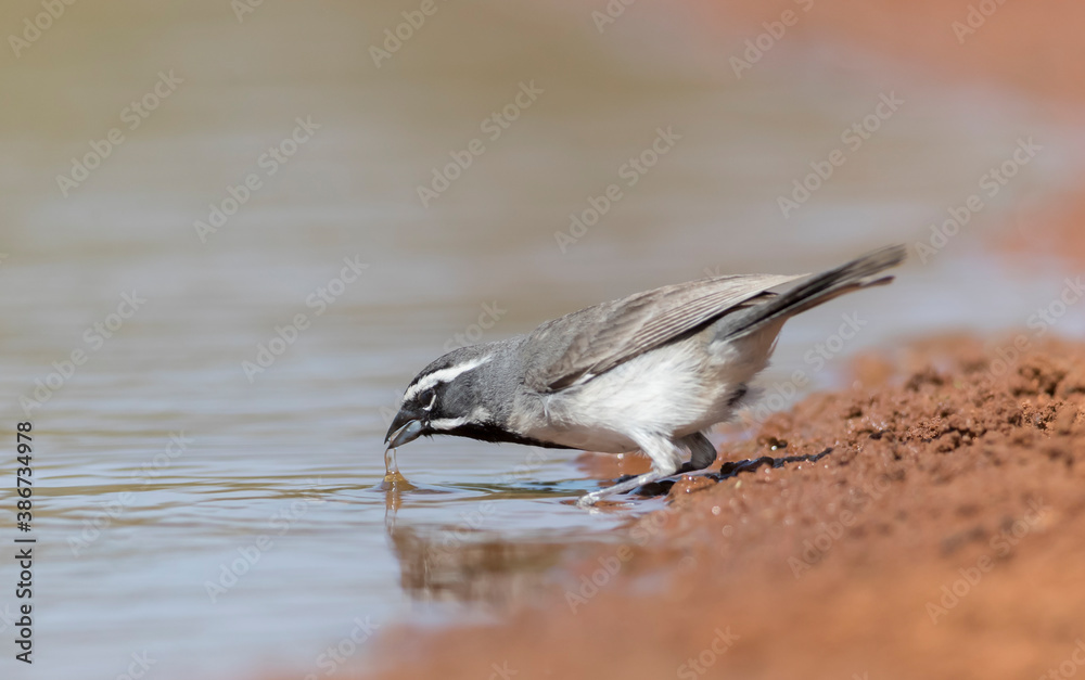Black-throated Sparrow drinking water