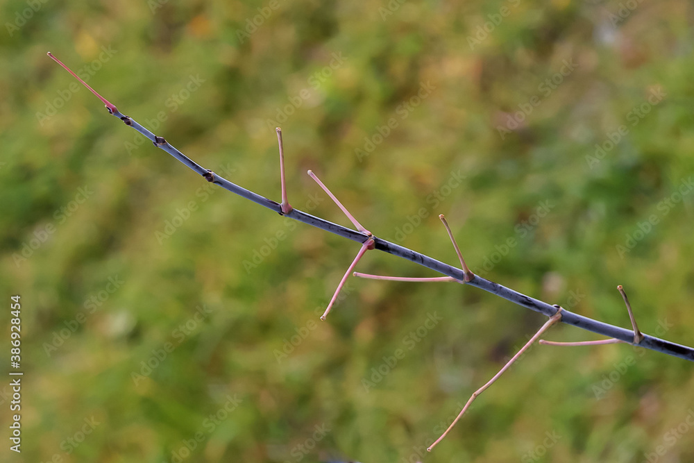 Top view of a maple twig from which yellowed leaves fell in autumn