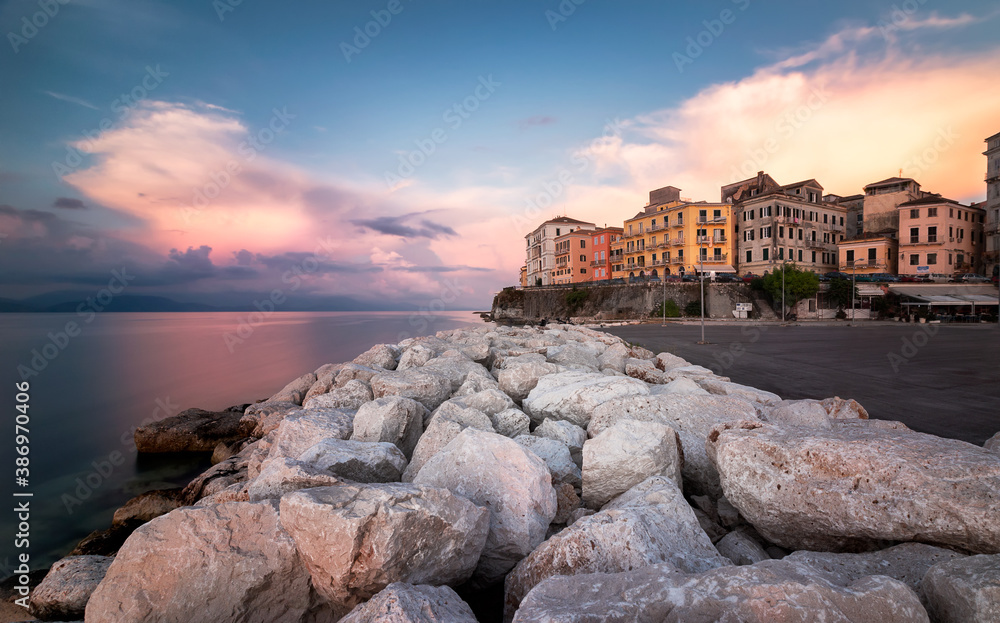 Kerkyra, Corfu, Greece: Panoramic view of the classical greek houses on Corfu island, capital Kerkyra