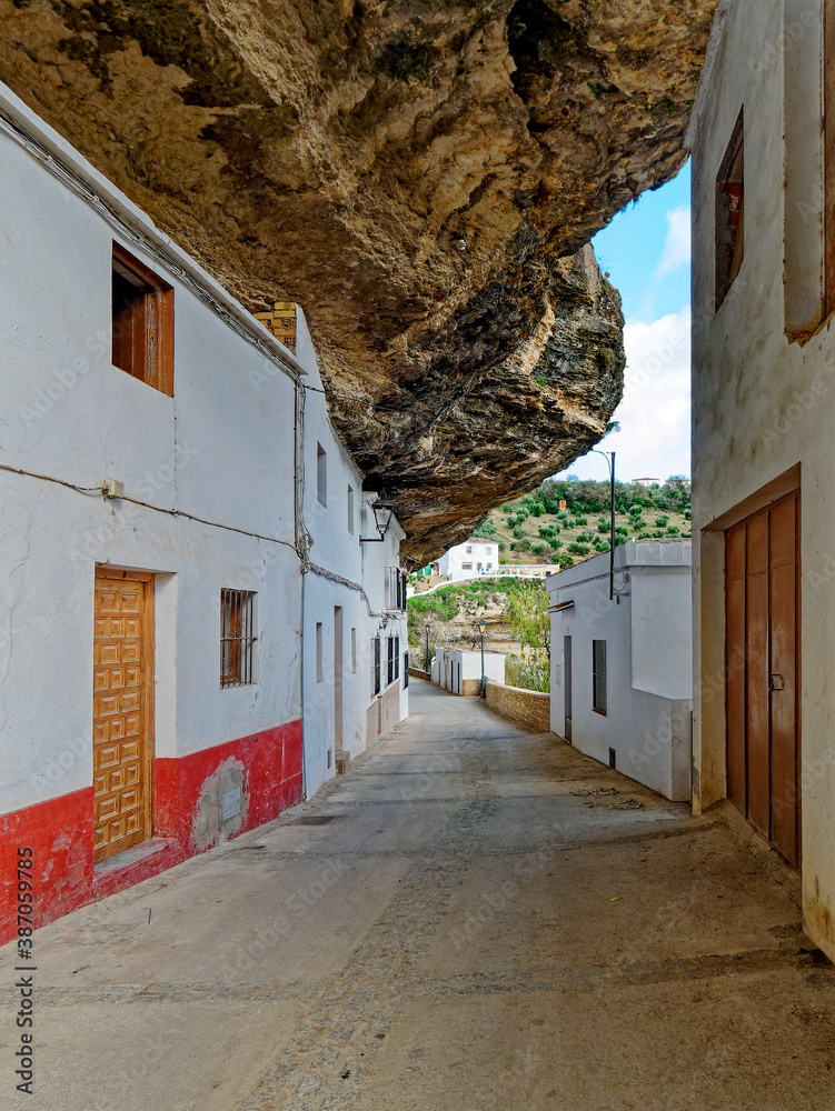 View of Streets and Houses on Rocks in Setenil de las Bodegas city