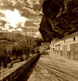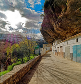 View of Streets and Houses on Rocks in Setenil de las Bodegas city