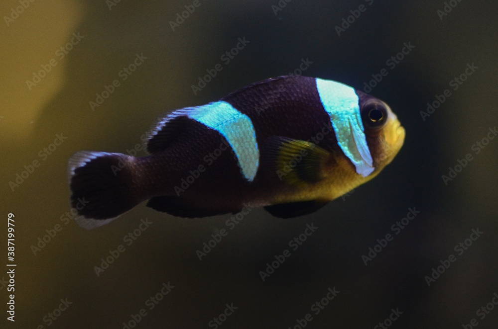 fish and snail in the aquarium