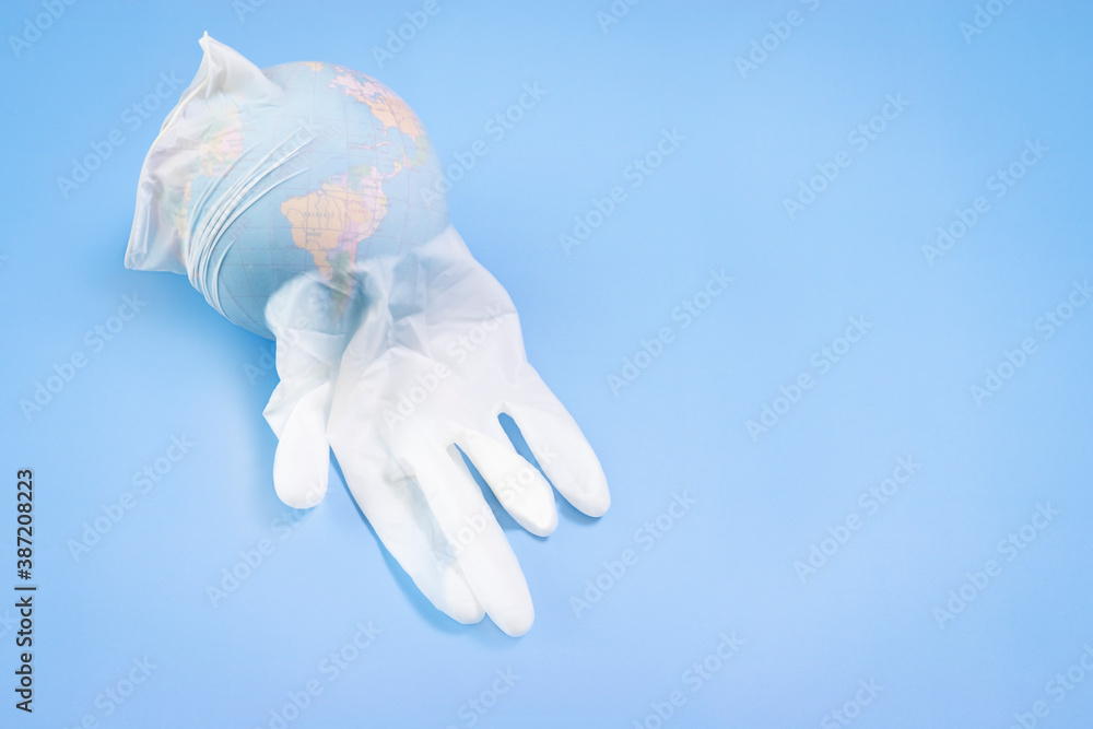 Globe inside a latex glove. Virus protection concept. Environmental pollution concept.