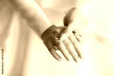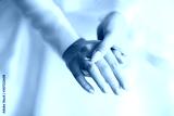 Close-up photo, beautiful hands of the bride with a wedding ring, and wedding bouquets