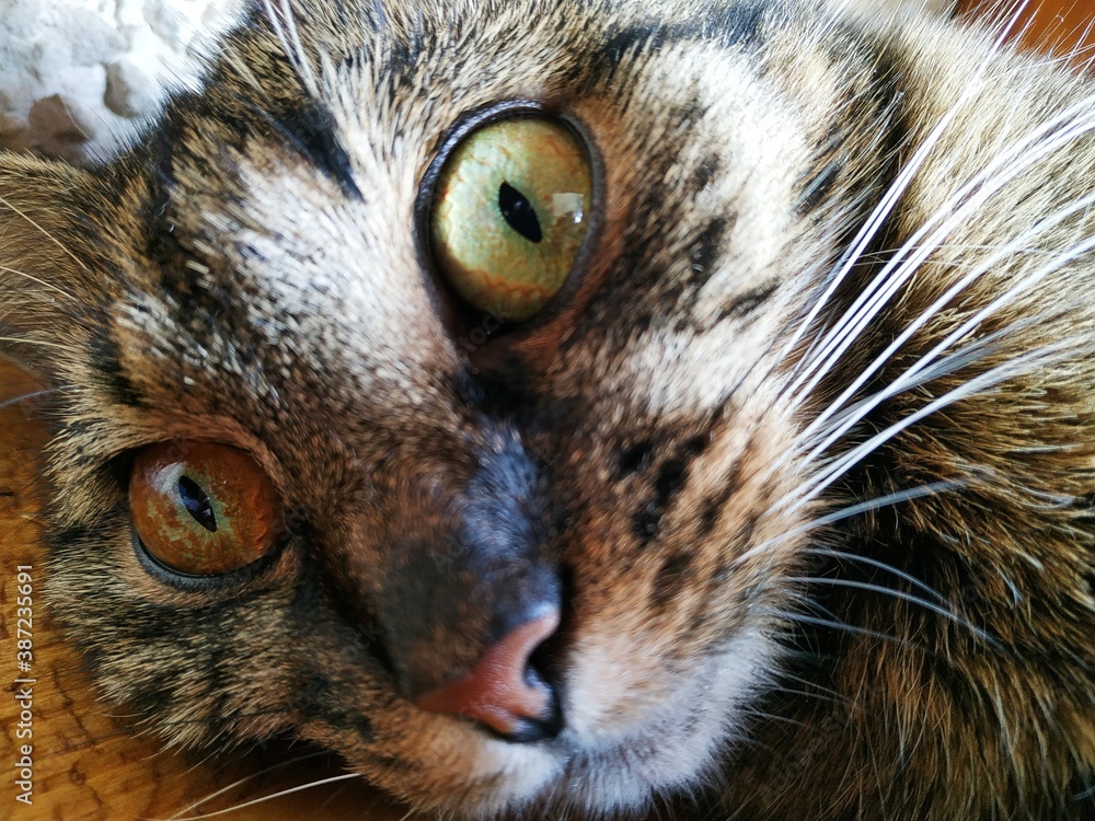 Funny cat with yellow eyes, close-up photo