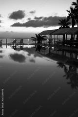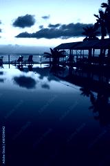 夕暮れのプールサイド