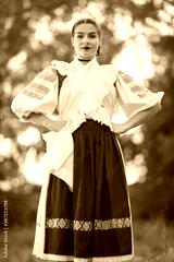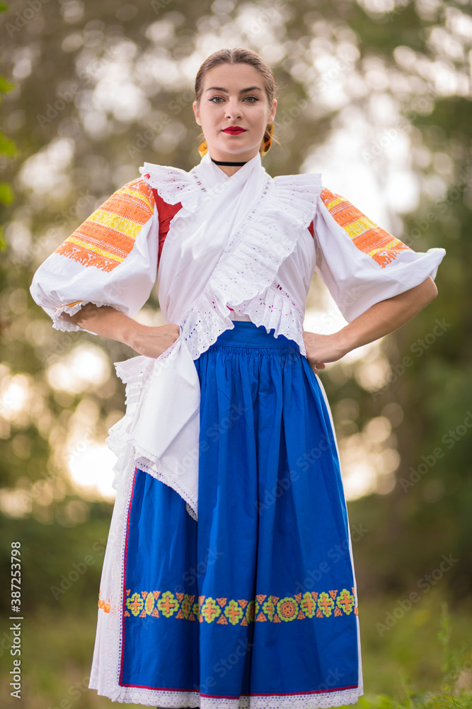 Beautiful woman wearing traditional Eastern Europe folk costumes. Slovak folklore.