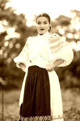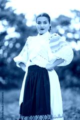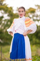 Beautiful woman wearing traditional Eastern Europe folk costumes. Slovak folklore.