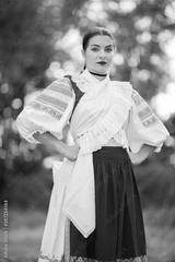 Beautiful woman wearing traditional Eastern Europe folk costumes. Slovak folklore.