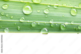 Water drops on green leaves isolated on white background