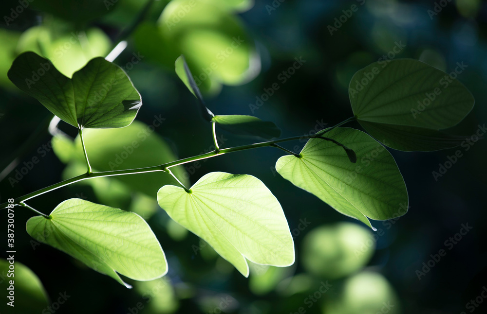 Fresh green leaf of Bauhinia tree glowing in sunlight