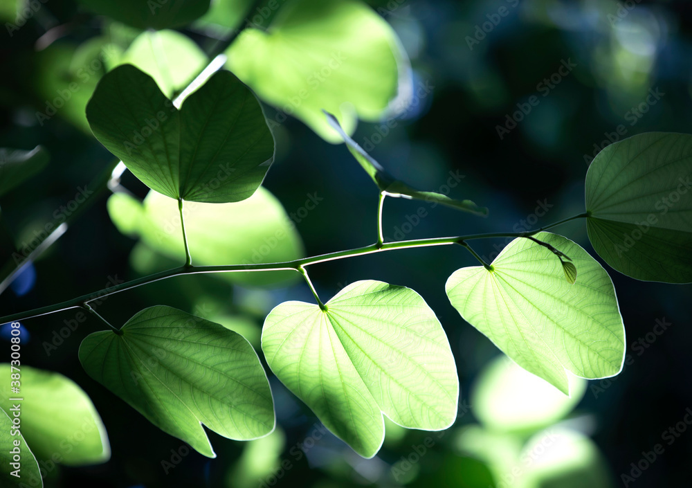 Fresh green leaf of Bauhinia tree glowing in sunlight