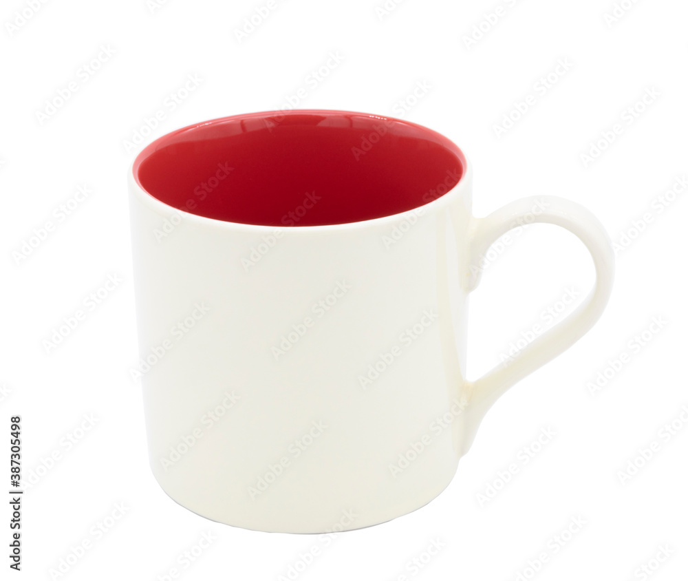 White ceramic cup with red color inside isolated on white background