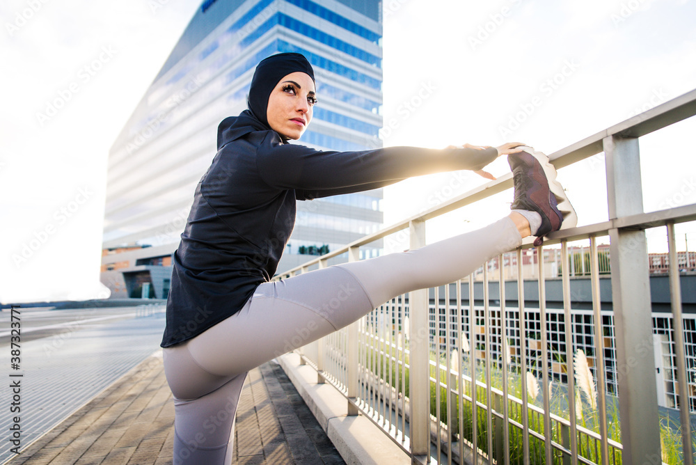 Arabian sportive woman training outdoors