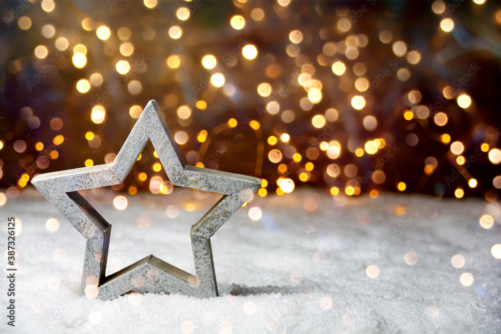 Christmas background with stars and bokeh lights - Greeting Card