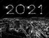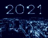 2021 Happy New Year fireworks over Yokohama cityscape at night, Japan