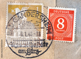 Briefmarke stamp gestempelt used frankiert vintage retro alt old bad gandersheim 1948 friedenstaube vogel pfennig mark rot red 8 heilbad