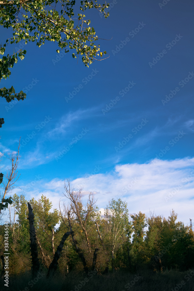 krajobraz drzewo liście konary niebo chmury błękit natura