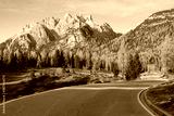Scenic view of an empty mountain pass road and gorgeous forest changing colors.