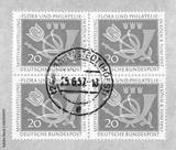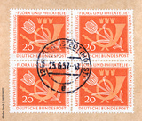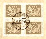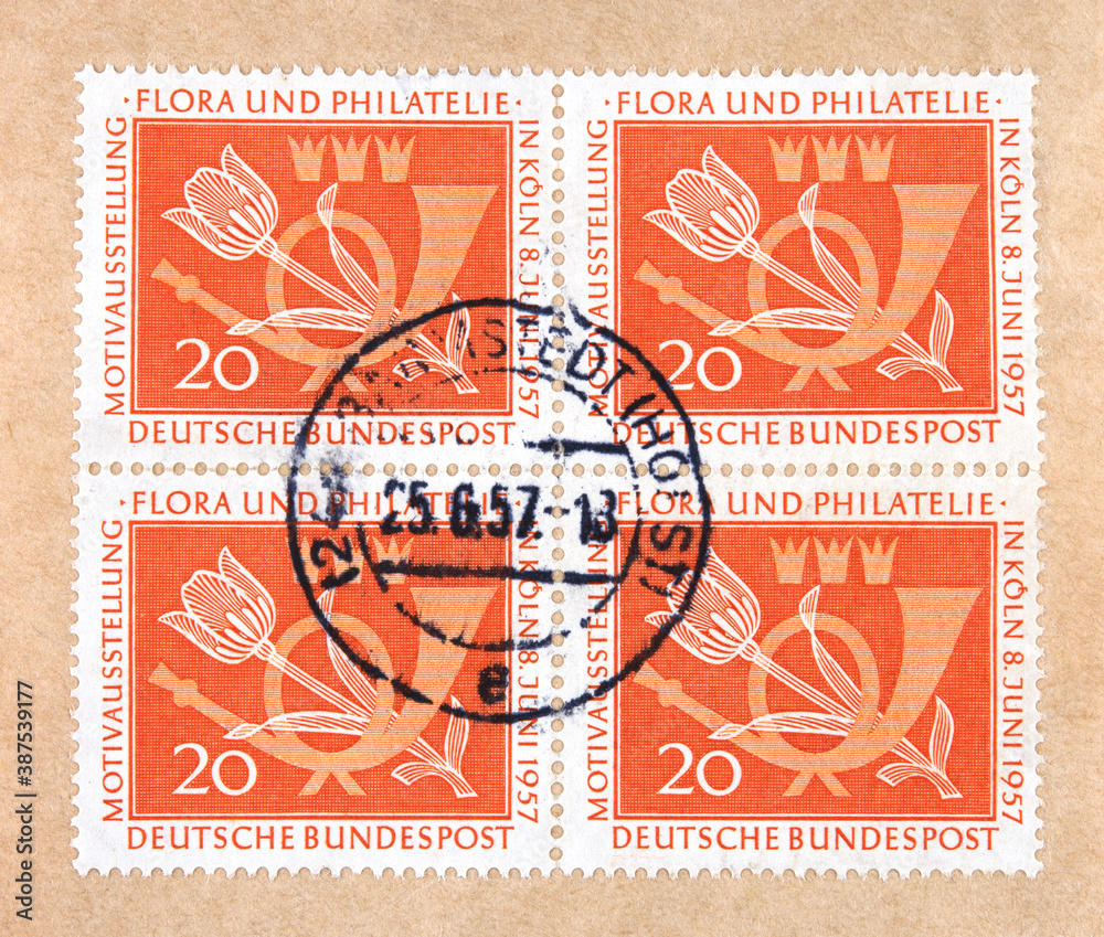 vintage retro alt old briefmarke stamp gestempelt frankiert orange posthorn blume flower tulpe tulip block 1957 barmstedt