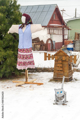 A doll made of straw dressed up in women's clothing for the traditional Russian holiday of Maslenitsa. Doll for burning at the stake. Seeing off the winter in Russia.