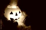 horror spooky funny ghost in halloween on holiday season greeting night celebration party with toy prop decoration and trick or treat autumn october festival and jack-o-lantern concept