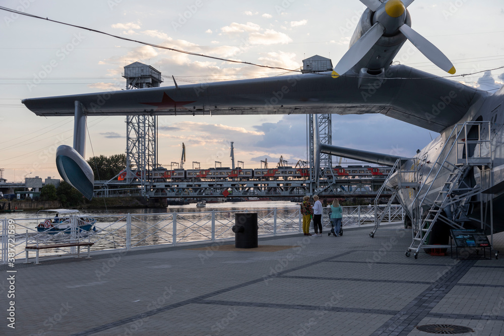 old two-tier bridge on the Pregolya river in Kaliningrad