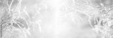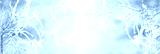 Winter background with snowy and iced branches of trees on blue sky backdrop. Christmas or New Year winter concept.