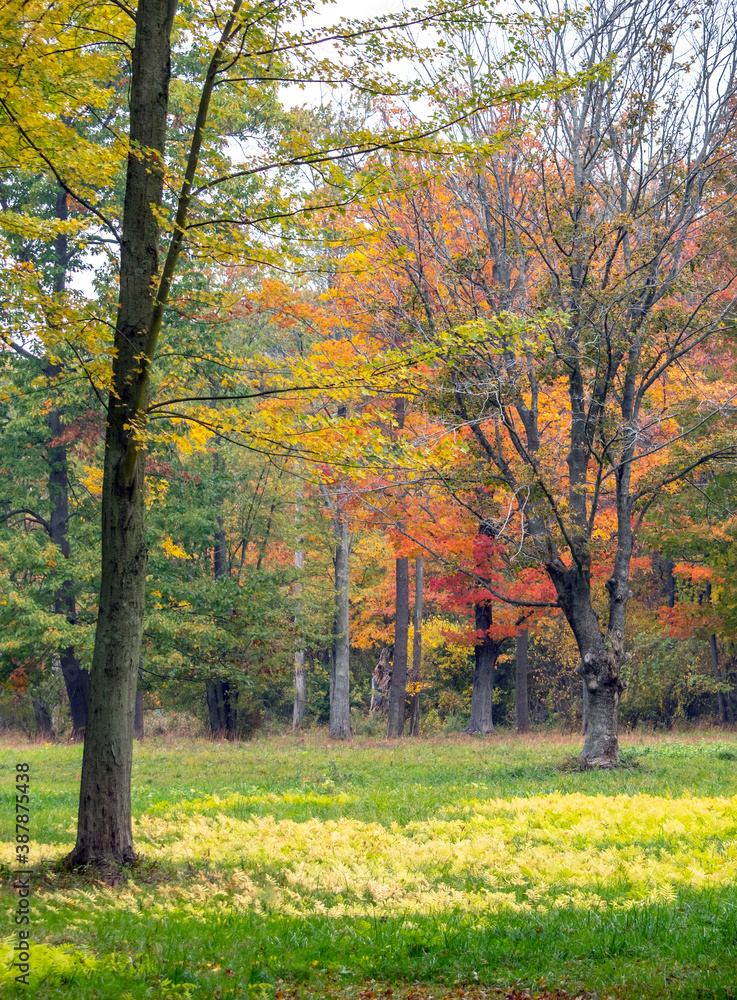 Autumn landscape in the USA with a pretty meadow and colorful trees