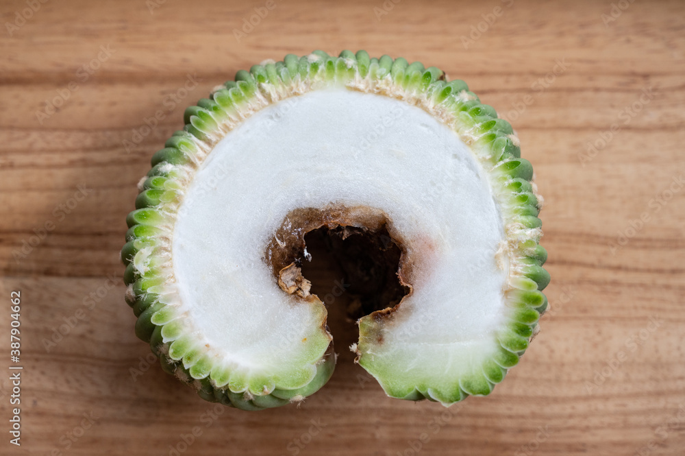 Echinopsis cristata after cutting half for save a cactus from rotting problem. Cactus rot is one of the main causes of cactus death from fungal and bacterial diseases attack.