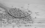 Coriander dry seeds in wooden spoon on wooden table