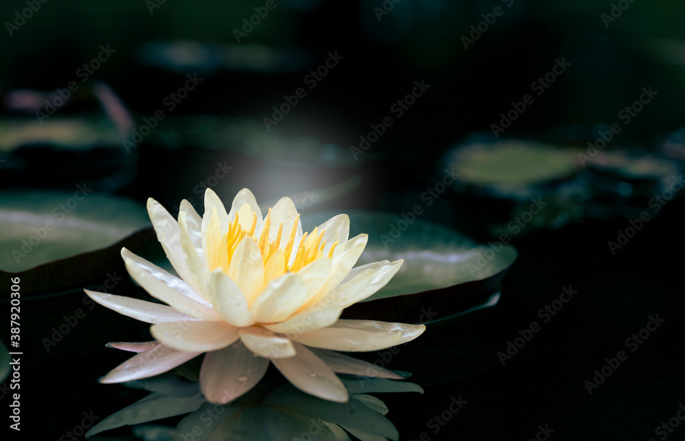 Beautiful Thai Lotus that have been appreciated with dark blue water surface