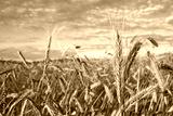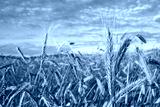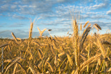 Łan zboża na tle nieba. Kłosy zbóż. A field of grain.