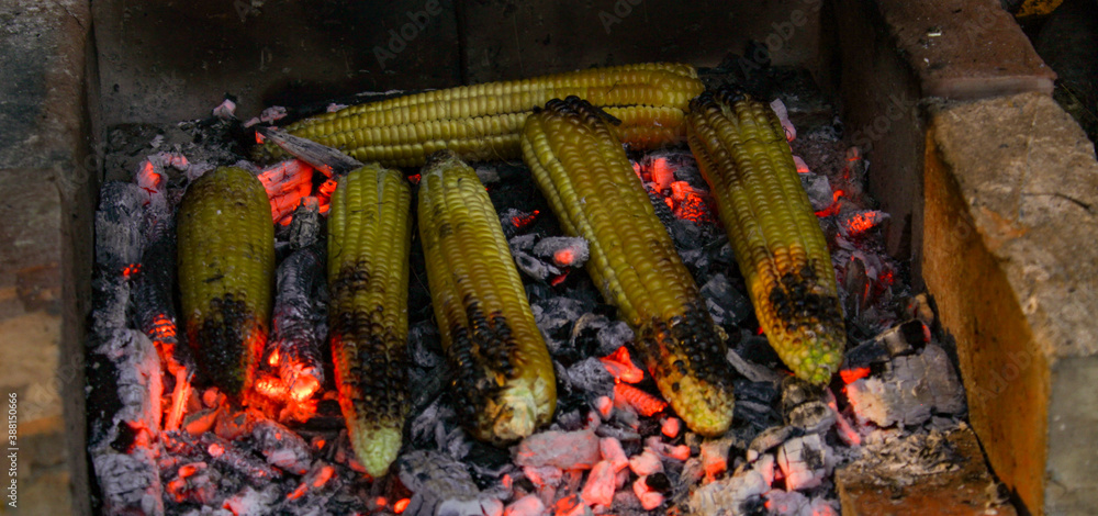 Burnt corn on the cob. Roasting corn on the cob at night on summer days. Summer nights by the fire.