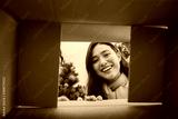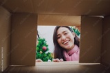 Young Asian couple open the gift box and using hand to take the present out of the box during the Christmas and Happy New Year season at home background.Christmas celebration concept.