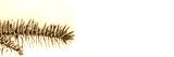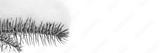 Snow covered spruce branch. Beautiful winter nature macro photo. Christmas poster template. White background copy space.