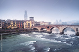 Ponte Pietra and at a foggy evening. Venice - Italy