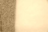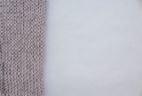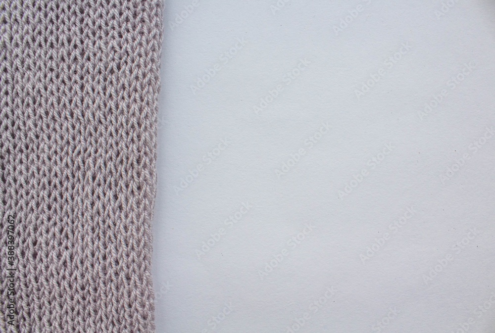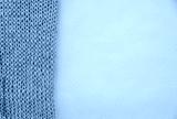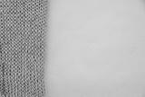 A ball of woolen thread with knitting needles lie on a white background by the window