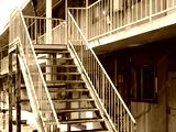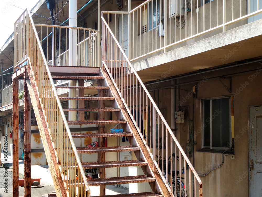 古いアパートの錆びた鉄骨階段