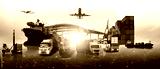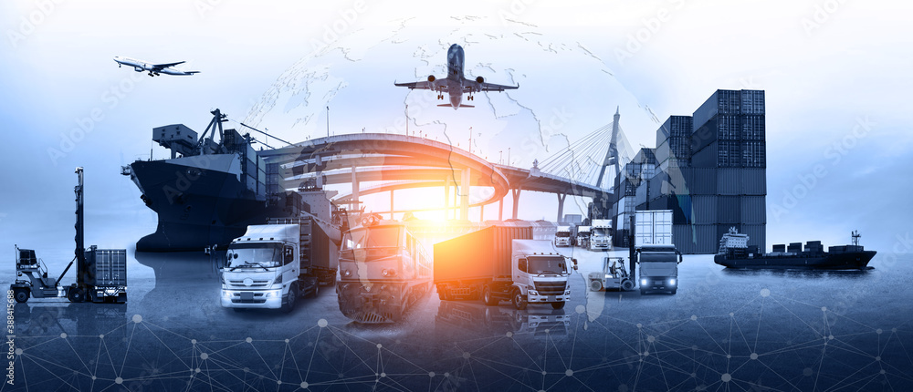Global business of Container Cargo freight train for Business logistics concept, Air cargo trucking, Rail transportation and maritime shipping, Online goods orders worldwide