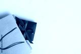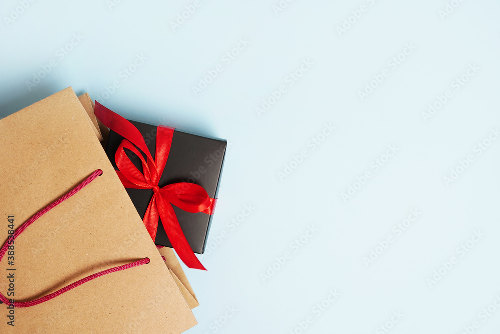 shopping bag with gift box on blue background, Black Friday sale shopping