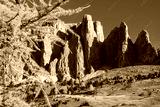 CLOSE UP: Beautiful view of golden branches stretching over mountain landscape