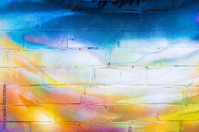 A fragment of colorful graffiti painted on a brick wall. Abstract backdrop for design.