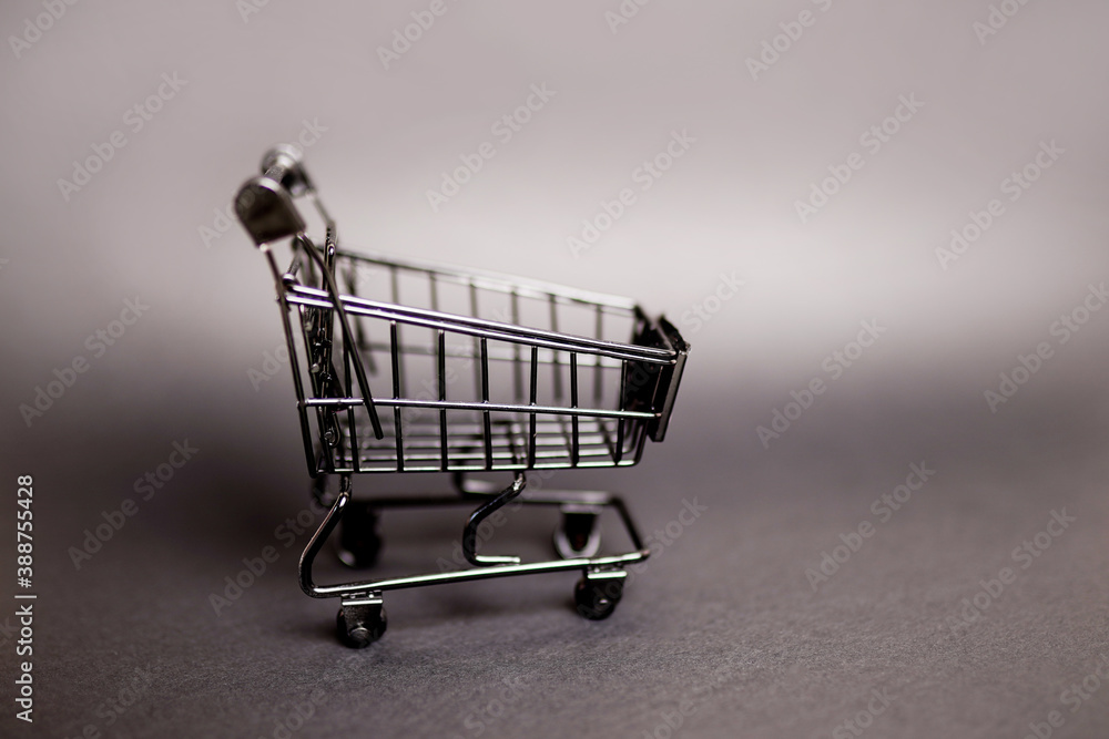 black empty shopping cart on gray background