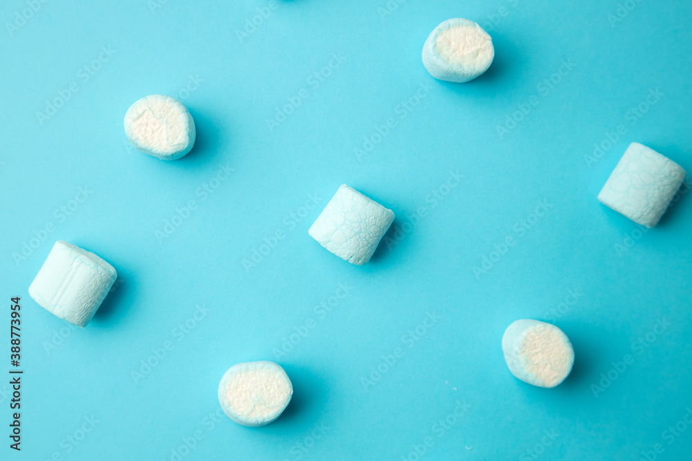 blue marshmallows on blue background